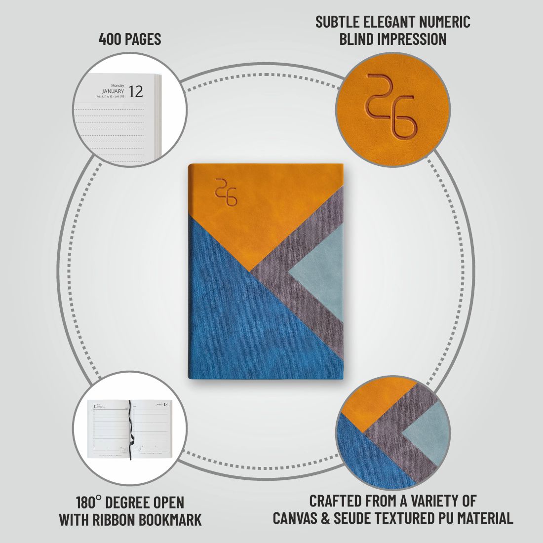 Crafted with a variety of canvas and suede textures, the 2026 Diary - Fuzen boasts a subtle and elegant numeric blind impression.